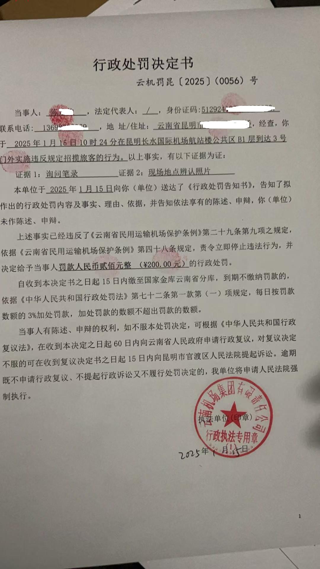 行政处罚决定书 云机罚 昆{2025} (0056)号
