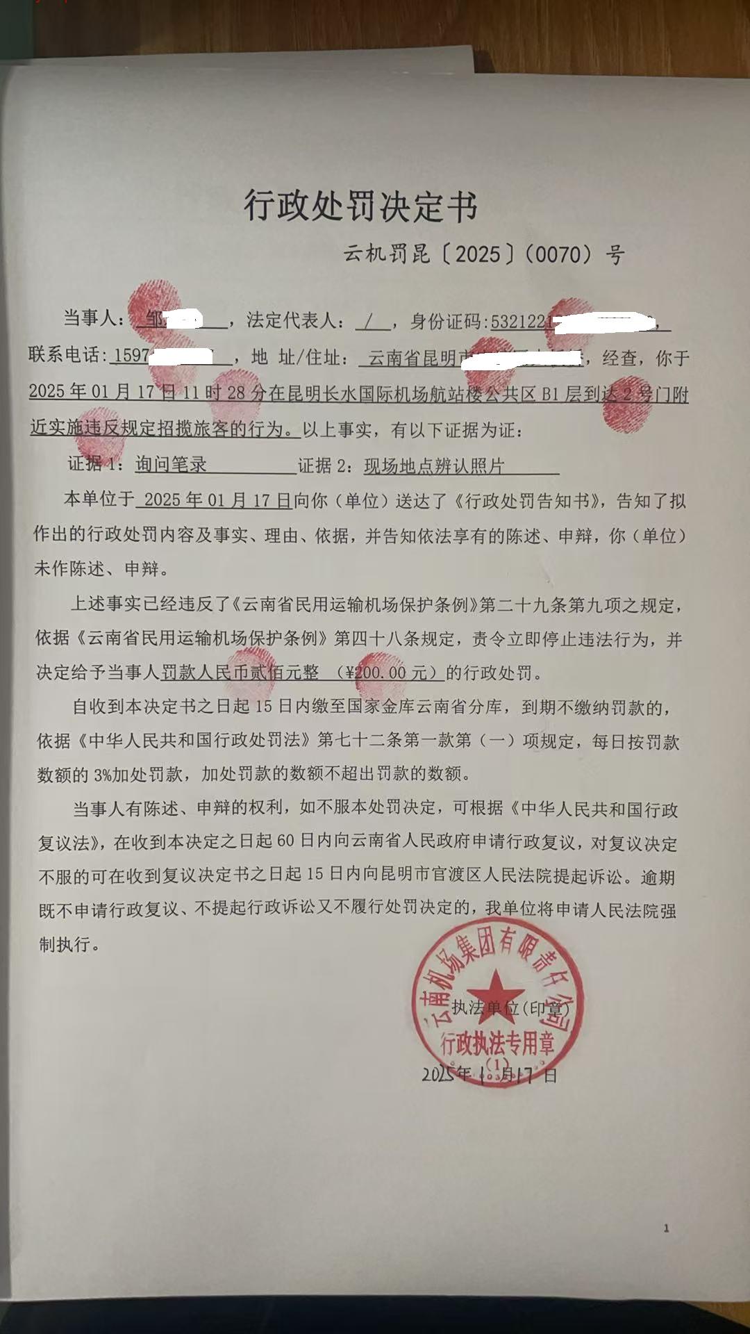 行政处罚决定书 云机罚 昆{2025} (0069)号