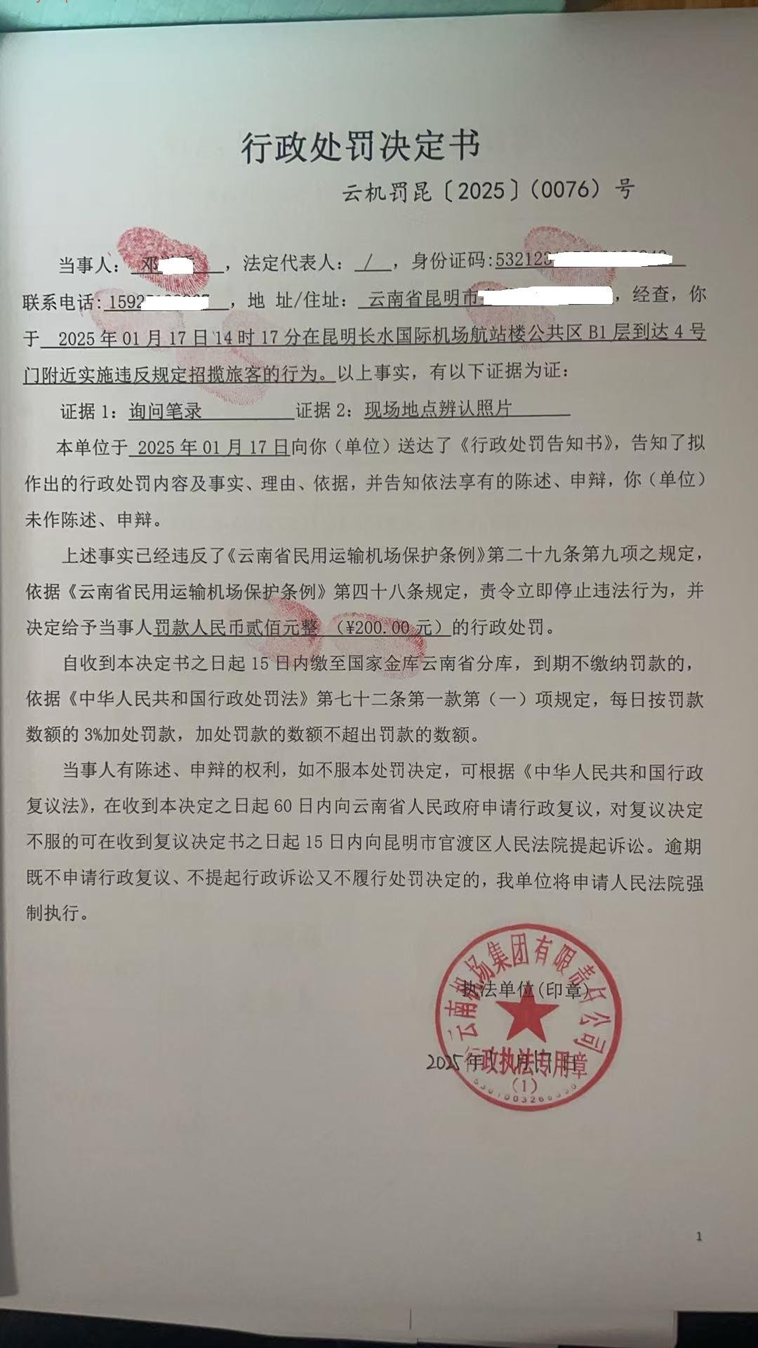 行政处罚决定书 云机罚 昆{2025} (0077)号