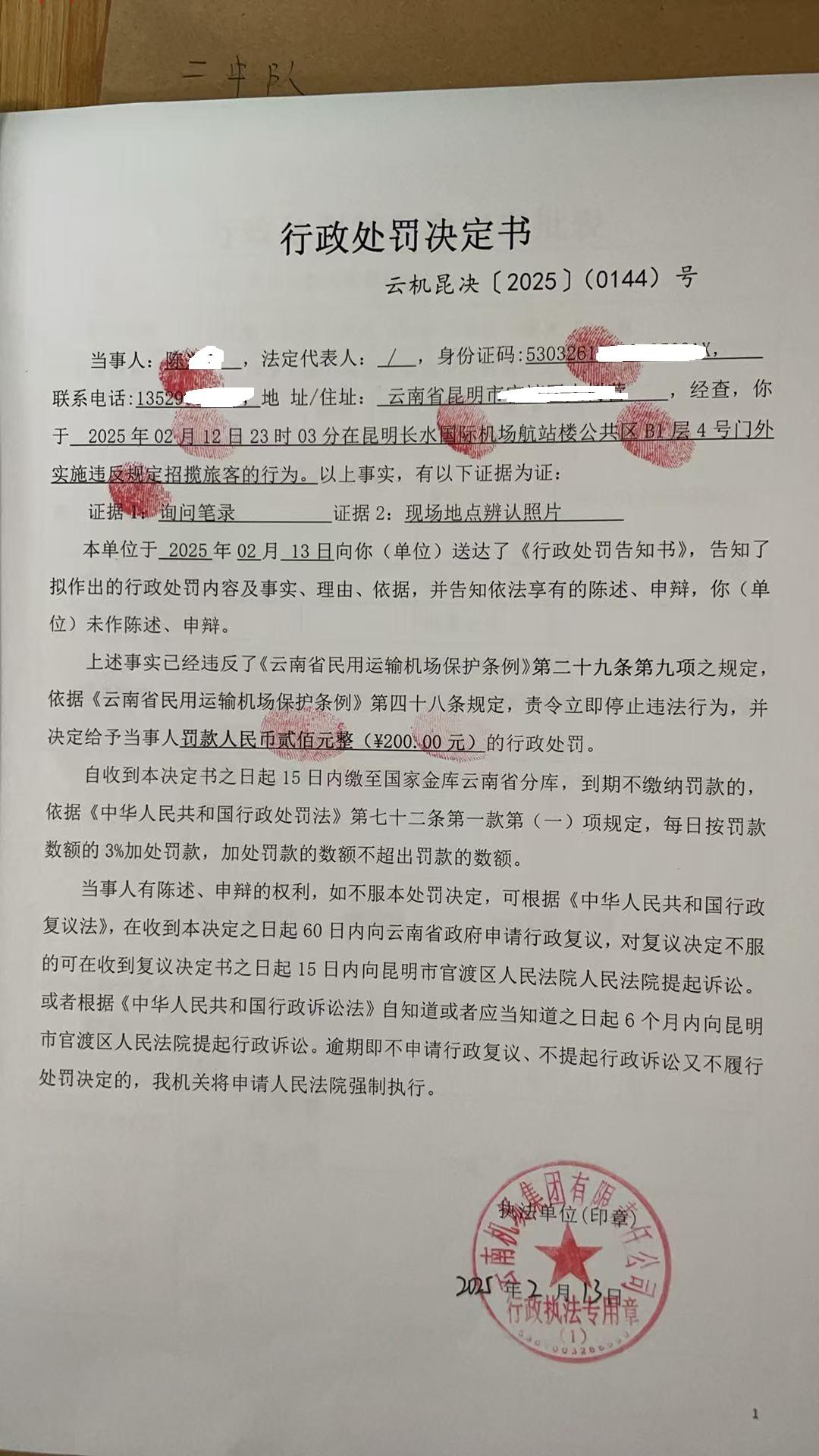 行政处罚决定书 云机罚 昆{2025} (0143)号