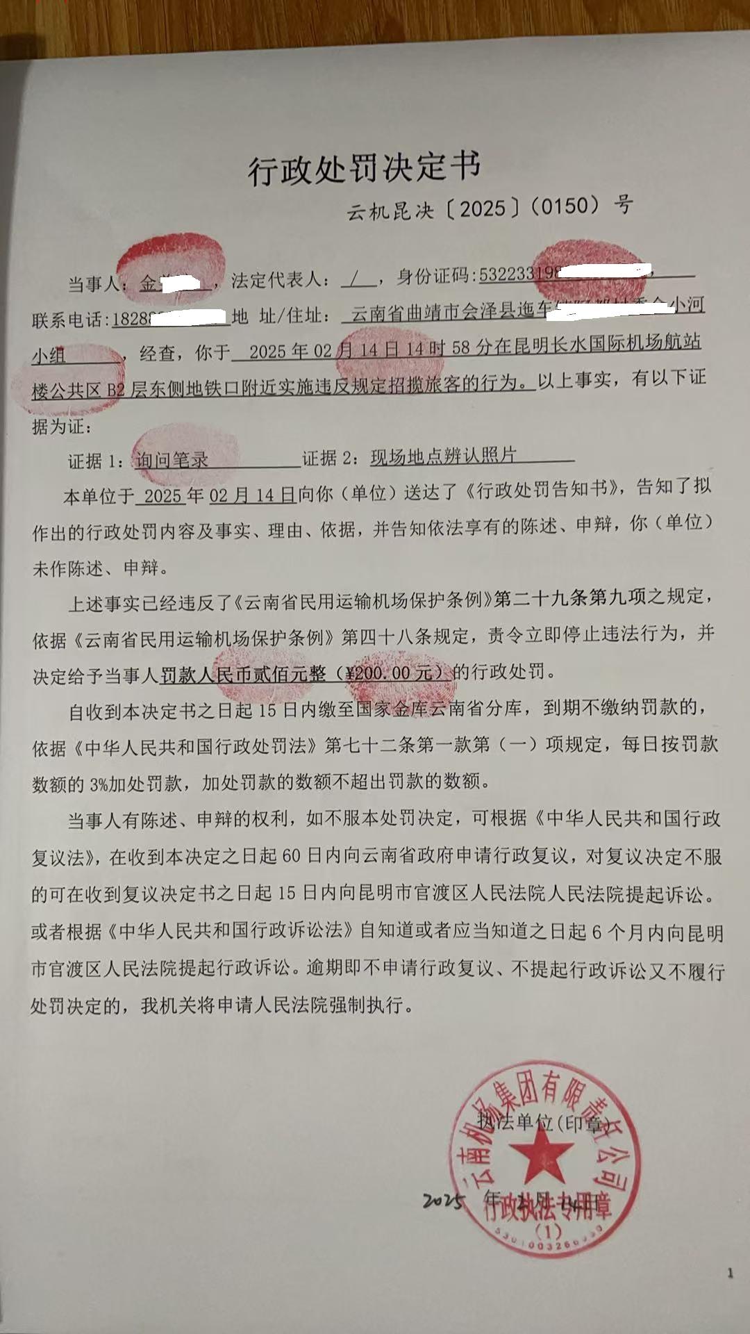 行政处罚决定书 云机罚 昆{2025} (0150)号