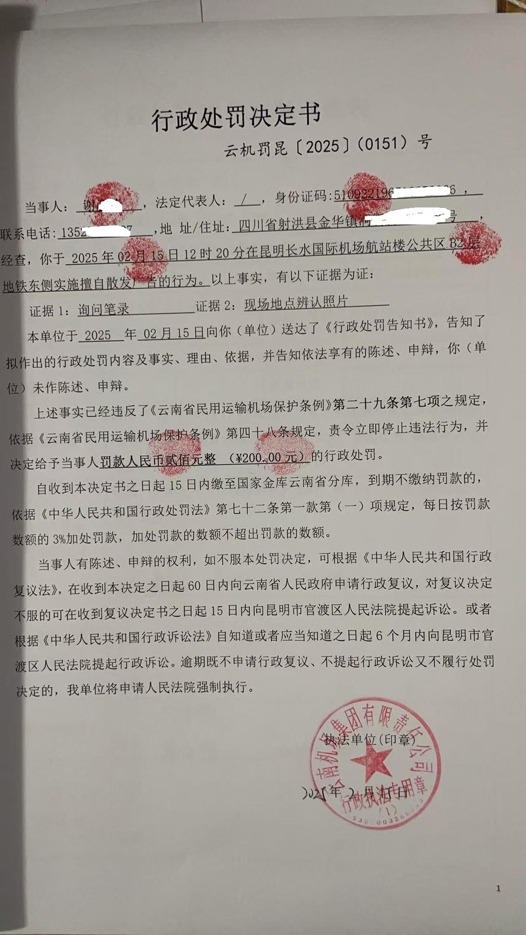 行政处罚决定书 云机罚 昆{2025} (0152)号