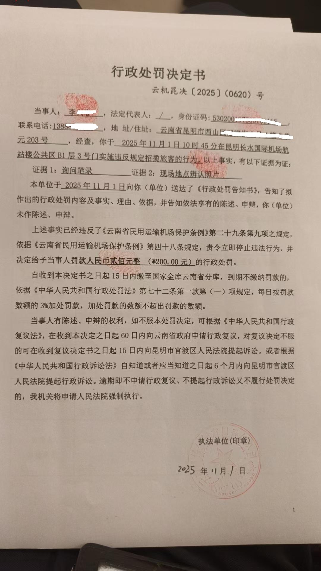 行政处罚决定书 云机罚 昆{2025} (0621)号