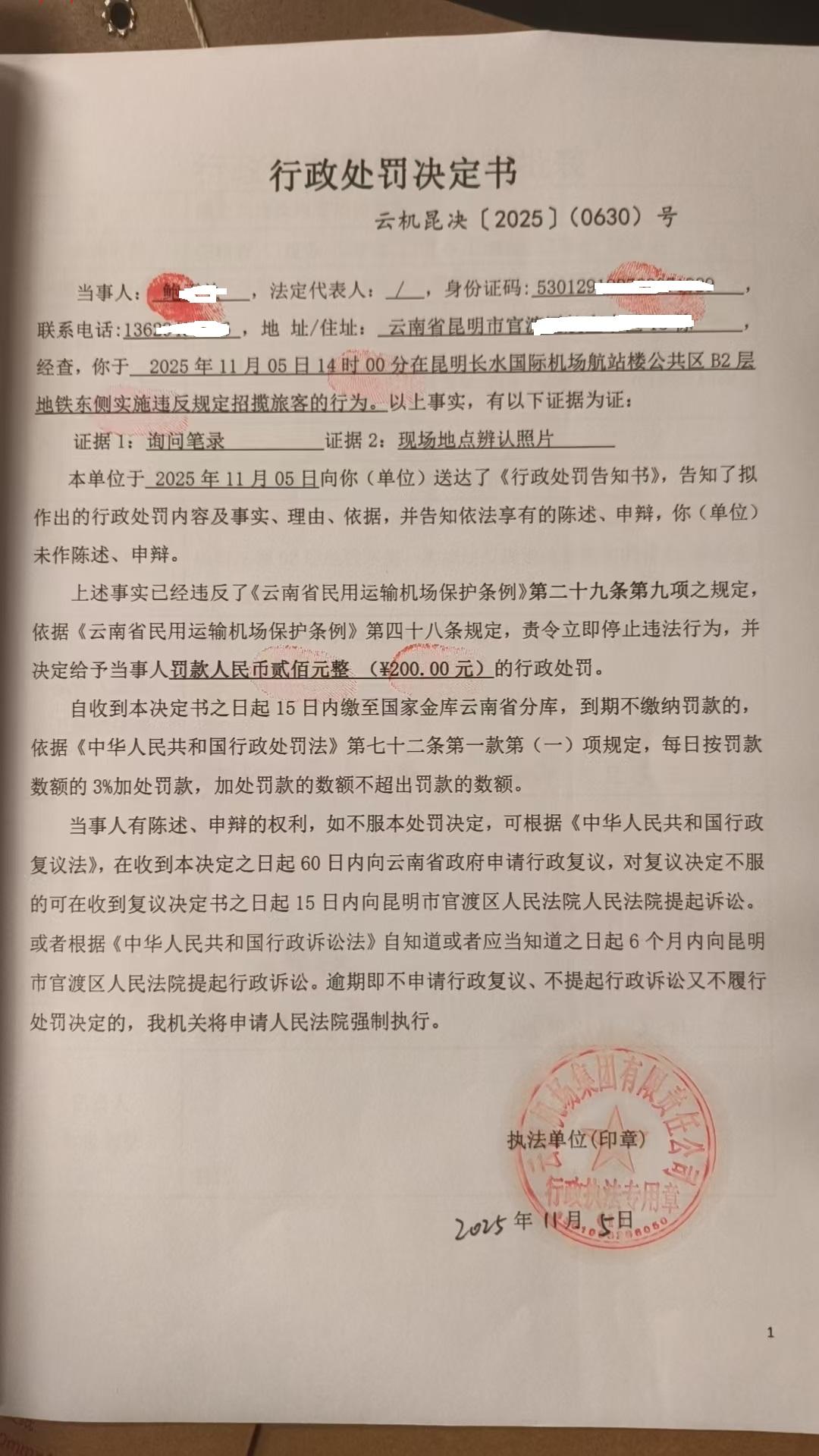 行政处罚决定书 云机罚 昆{2025} (0629)号