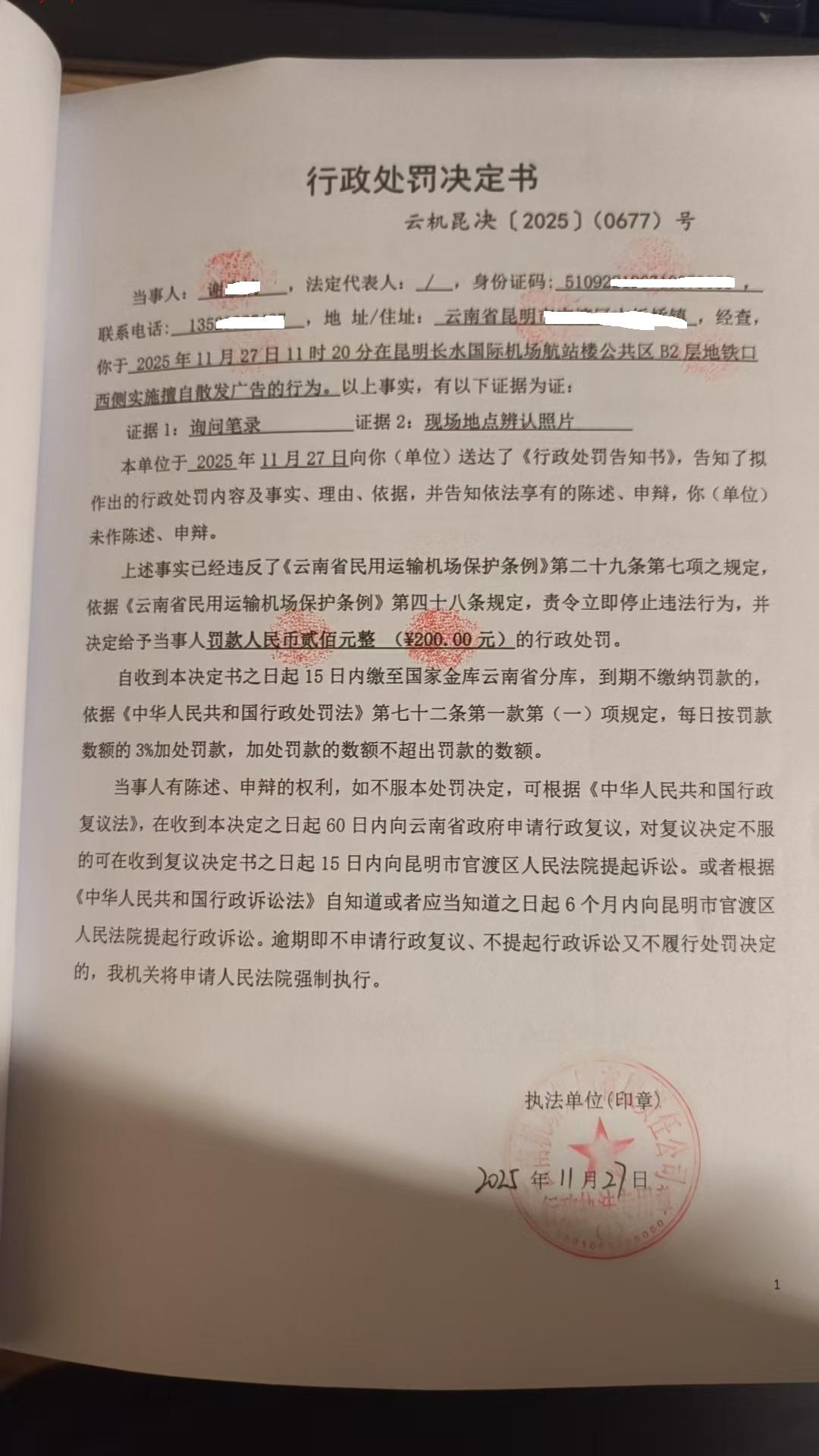 行政处罚决定书 云机罚 昆{2025} (0678)号