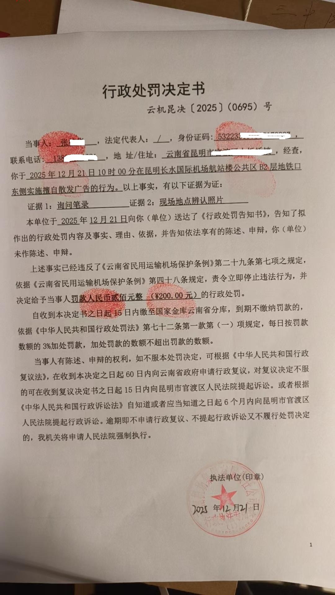 行政处罚决定书 云机罚 昆{2025} (0694)号